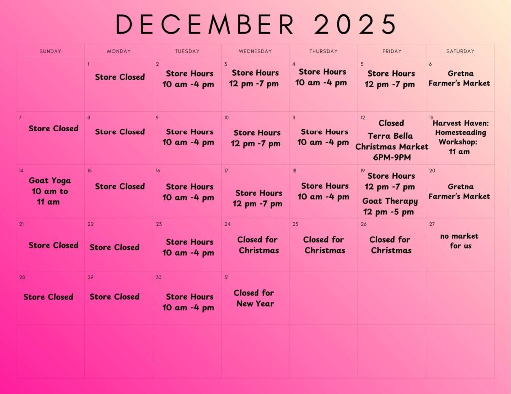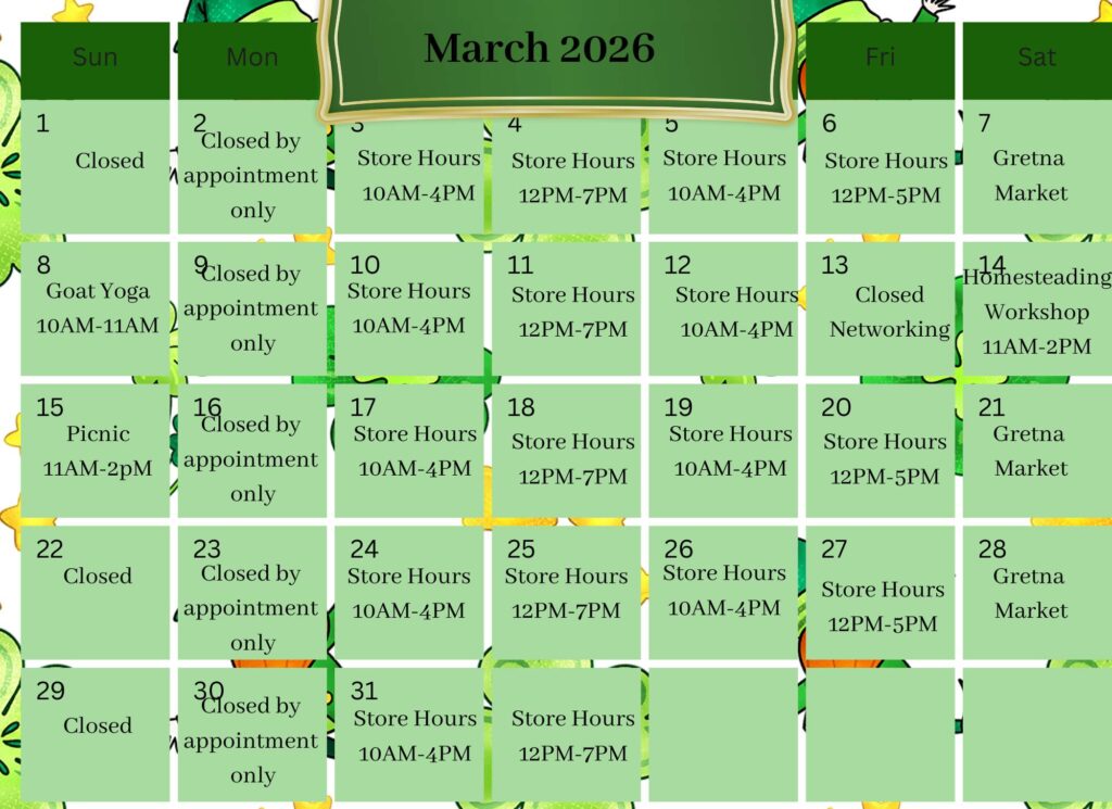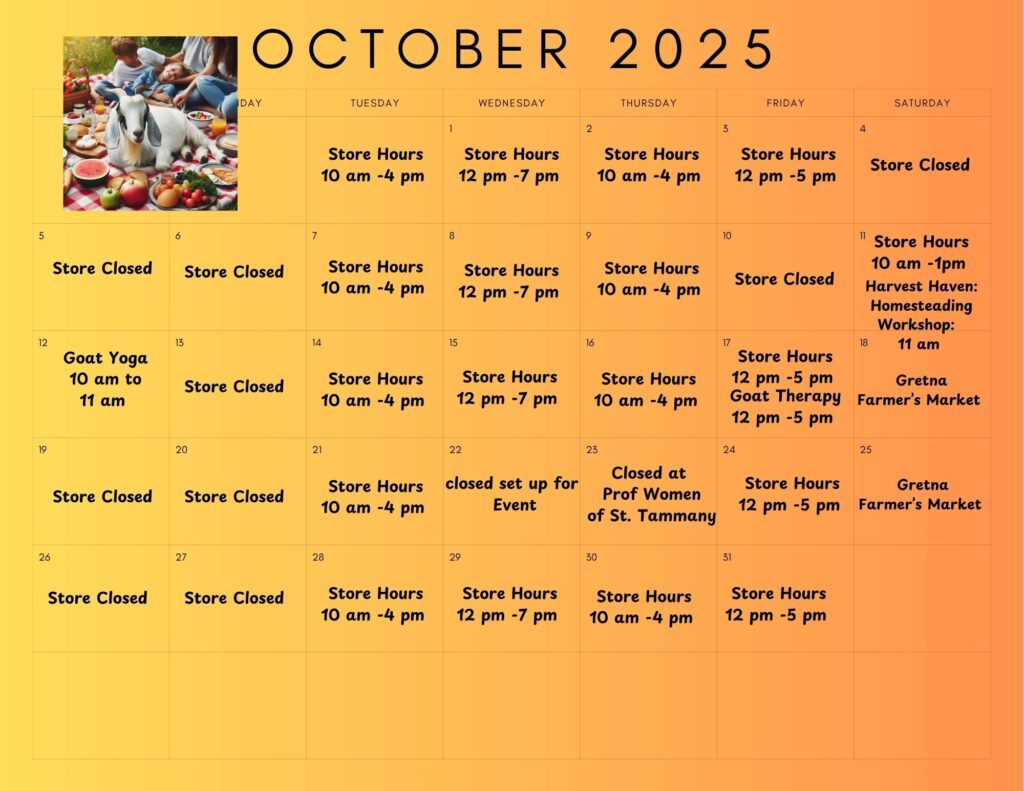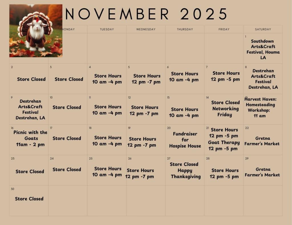 Join us for a little goat-inspired peace—you deserve it! For more details, see our Calendar or contact us directly.
