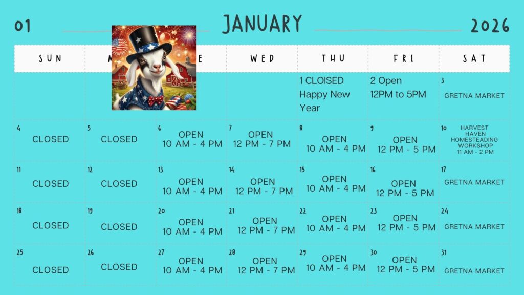 Join us for the Harvest Haven Homesteading Workshop Series, held every 2nd Saturday of the month (except in November due to Shows I attend to sell my products). Learn valuable skills such as organic gardening, beekeeping, food processing, and more. Whether you’re a beginner or an experienced homesteader, our workshops provide practical knowledge in a welcoming community setting. Come grow with us!