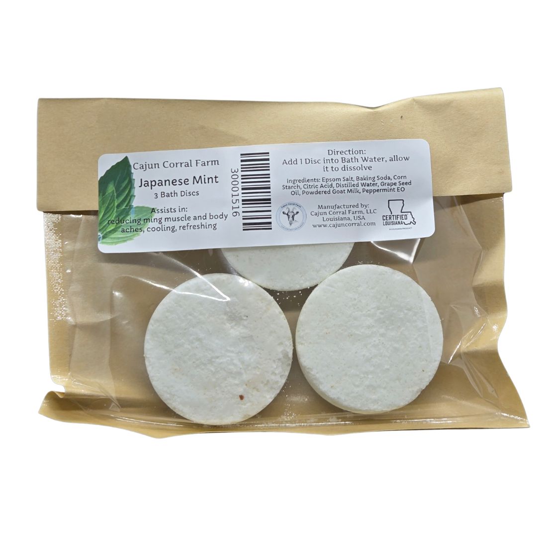 Ingredients: Epsom Salt, Baking Soda, Cornstarch, Citric Acid, distilled Water, Coconut Oil, powdered Goat Milk, Japanese Mint EO.